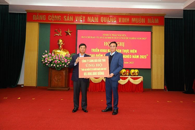 Hưởng ứng phong trào “Cả nước chung tay vì người nghèo - Không để ai bị bỏ lại phía sau” do Thủ tướng Chính phủ phát động và lời kêu gọi ủng hộ "Tuần cao điểm Tết vì người nghèo năm 2023" của tỉnh Thái Nguyên, Công ty xăng dầu Bắc Thái (Petrolimex Bắc Thái/Công ty) đã triển khai Chương trình “Tuần cao điểm Tết vì người nghèo năm 2023” từ ngày 23/12/2022 đến ngày 15/01/2023.