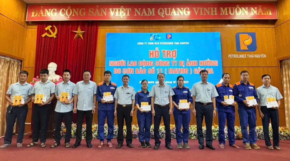 Với tinh thần hành động khẩn trương, hỗ trợ sớm nhất hàng nghìn hộ dân đang chìm trong nước lũ và bị cô lập, ngay trong ngày 08.10.2025, tại trụ sở Ủy ban MTTQ Việt Nam xã Điềm Thụy, tỉnh Thái Nguyên, đoàn công tác Petrolimex do Phó Tổng Giám đốc Nguyễn Sỹ Cường làm trưởng đoàn cùng đại diện lãnh đạo Công đoàn Xăng dầu Việt Nam, các Ban nghiệp vụ Tập đoàn và Đoàn thanh niên đã đến thăm hỏi, động viên; đồng thời trao 1 tỷ đồng hỗ trợ và nhu yếu phẩm trị giá 100 triệu đồng tới người dân trên địa bàn tỉnh Thái Nguyên. Cùng ngày, đoàn công tác cũng đã tới thăm hỏi và động viên người lao động tại Công ty TNHH MTV Petrolimex Thái Nguyên bị thiệt hại do bão và mưa lũ gây ra.